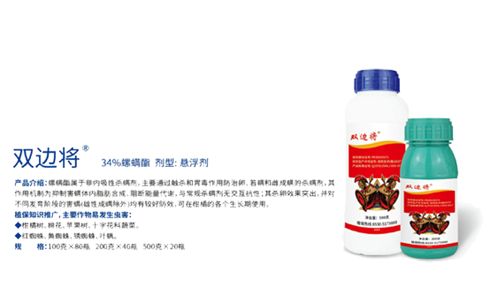 双边将+治诛侠(34%螺螨酯+40%丙溴磷)剂型:悬浮剂+乳油